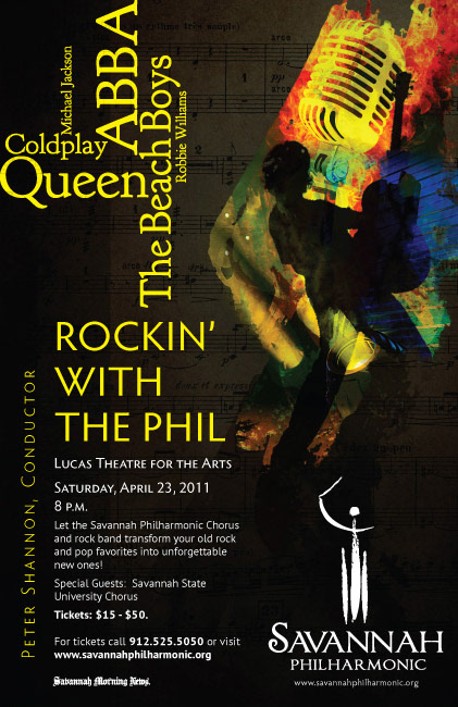 Created visually striking watercolor-style montages for the Savannah Philharmonic concert year. The art was adapted for posters, billboards and show programs.